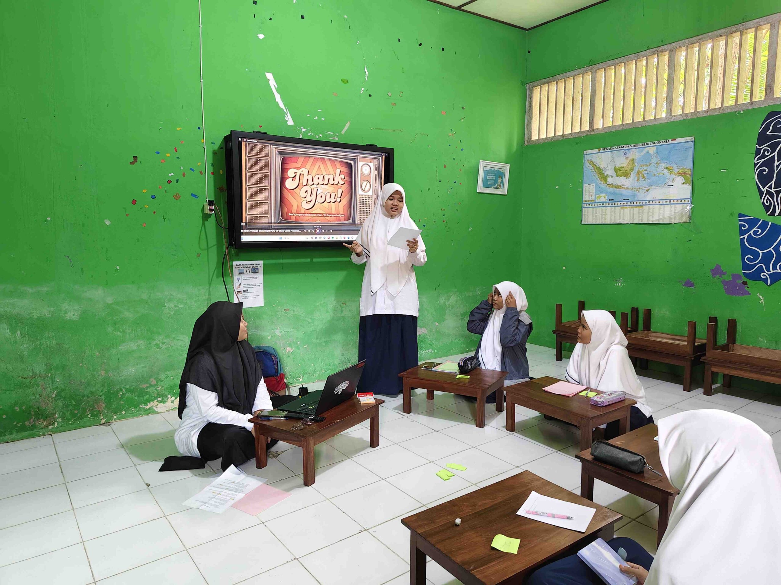 Setelah pengarahan, suasana berubah menjadi panggung ekspresi dan kreativitas. Santri tampak sangat antusias mengikuti setiap aktivitas—ada yang sibuk memotong bahan masakan dengan ceria, memainkan gamelan dengan khidmat, menyampaikan pidato dengan penuh semangat, hingga melakukan percobaan sains sederhana yang memukau. Tawa, tepuk tangan, dan sorakan dukungan terdengar di berbagai sudut sekolah, menciptakan atmosfer belajar yang hangat dan menyenangkan.